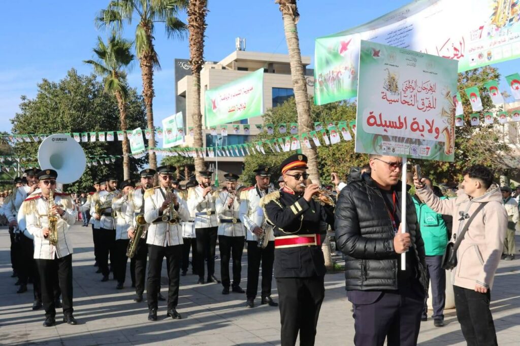 المسيلة/ بمناسبة تحصل الفرقة النحاسية التشريفية الهلال على المرتبة الأولى وطنيا للمرة السابعة ضمن فعاليات المهرجان الوطني للفرق النحاسية والمقام بولاية الشلف خلال الفترة الممتدة من 26 الى غاية 30 ديسمبر 2025، يتقدم السيد نجم الدين طيار والي ولاية المسيلة بخالص عبارة التهاني والتبريكات لكامل أعضاء الفرقة النحاسية التشريفية الهلال نظير هذا الإنجاز الكبير.