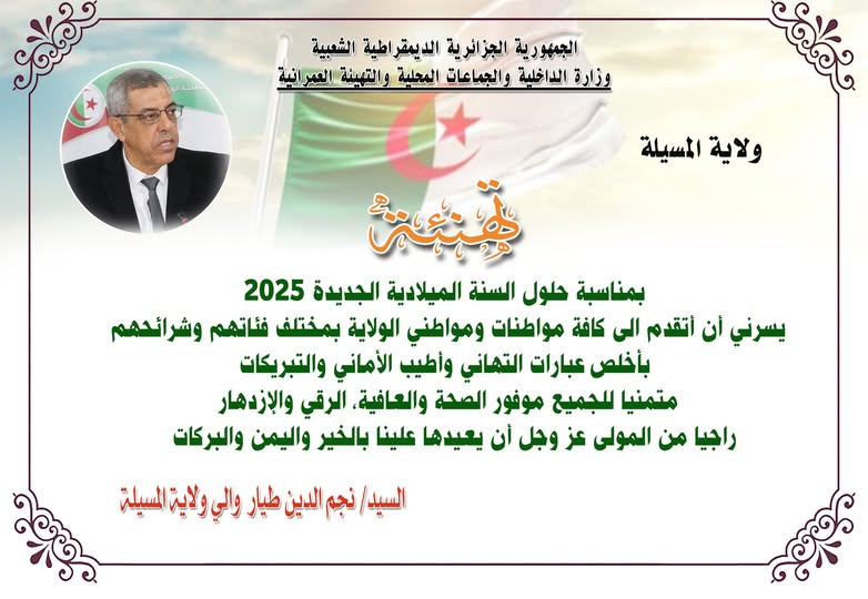 تهنئة بمناسبة حلول السنة الميلادية الجديدة 2025
