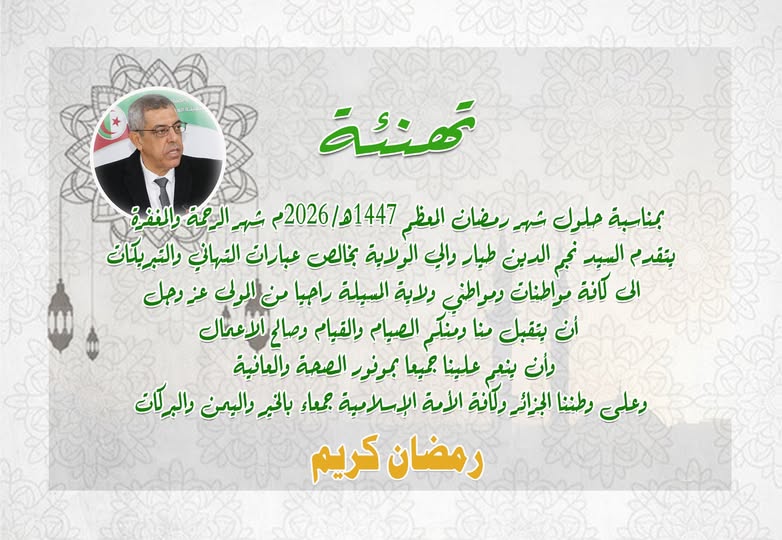 تهنئة بمناسبة حلول شهر رمضان المبارك