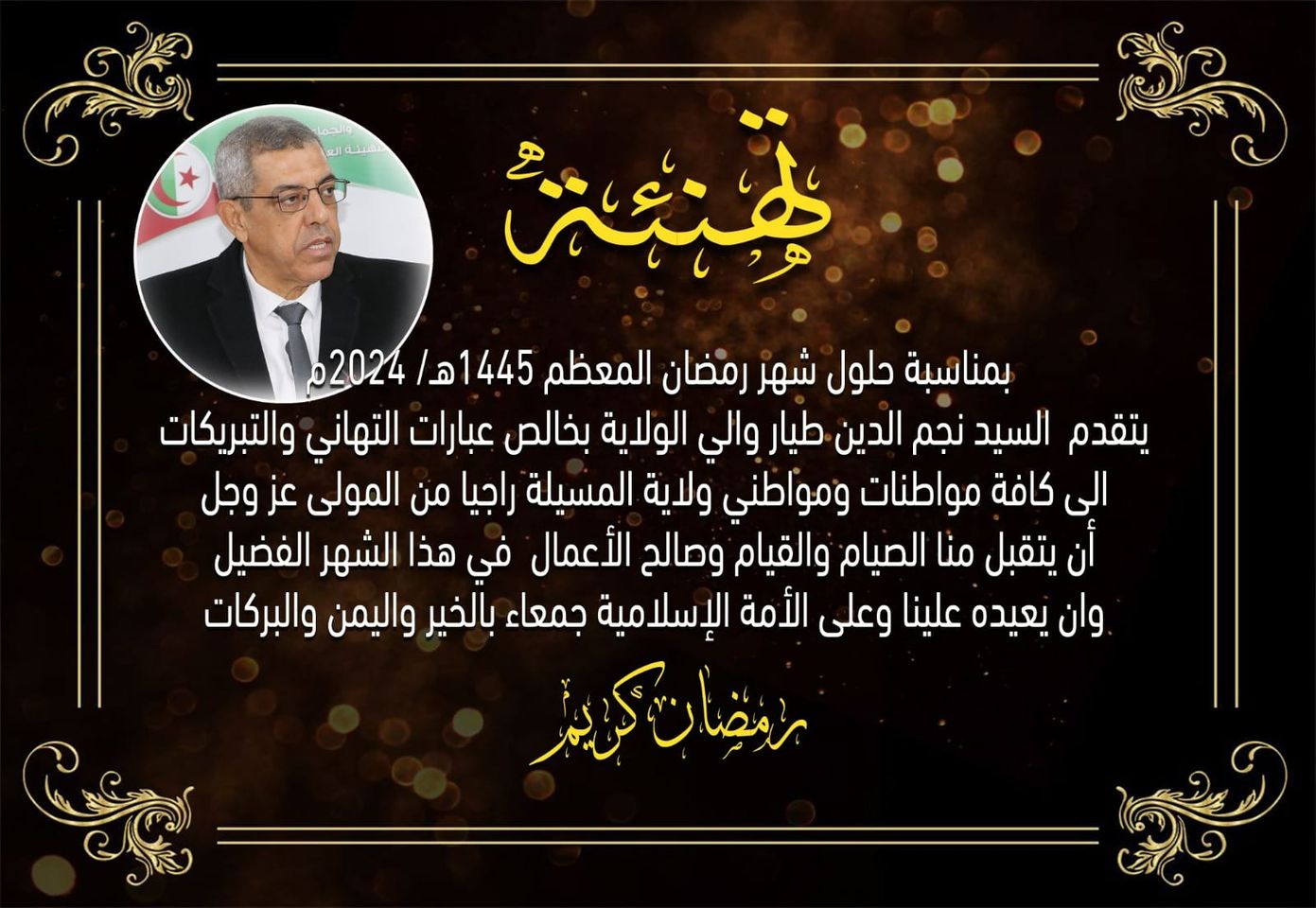 تهنئة بمناسبة حلول شهر رمضان المعظم 1445 هـ/ 2024 م