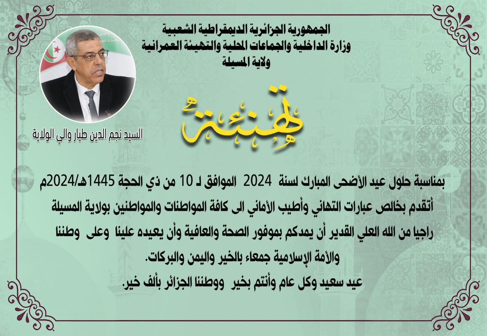 تهنئة بمناسبة عيد الأضحى المبارك لسنة 2024