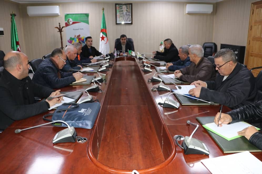 المسيلة/ السيد الأمين العام للولاية يترأس أمسية اليوم السبت 21 جانفي 2023 جلسة عمل للخلية الولائية لليقظة ومتابعة المخاطر الكبرى، بحضور السيد رئيس ديوان السيد الوالي، لمتابعة حالة التقلبات الجوية المسجلة مؤخرا بالتنسيق مع السادة رؤساء الدوائر.