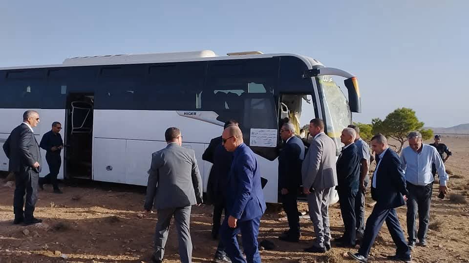 المسيلة/ على إثر حادث المرور الجسماني الذي تعرضت له حافلة لنقل المسافرين على متنها 47 راكبا، تعمل على خط الرابط بين بشار – باتنة، على مستوى الطريق الوطني رقم 46 بإقليم دائرة جبل امساعد، تنقل اليوم الأربعاء 01 أكتوبر 2025 السيد نجم الدين طيار والي ولاية المسيلة، بحضور بالسادة: الوالي المنتدب لبوسعادة، المصالح الأمنية، رئيس دائرة جبل امساعد، رئيس دائرة بوسعادة، رئيس المجلس الشعبي لبلدية جبل امساعد ،مدير الاشغال العمومية لولاية المسيلة، المدير المنتدب الاشغال العمومية.