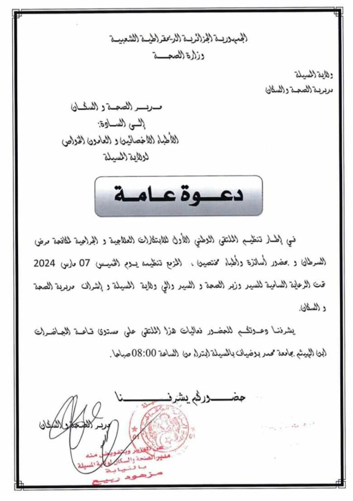 دعوة عامة/ مديرية الصحة والسكان لولاية المسيلة