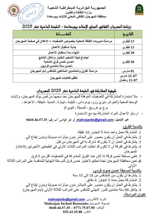 رزنامة المهرجان الثقافي المحلي للانشاد ببوسعادة/ الطبعة الحادية عشر 2025