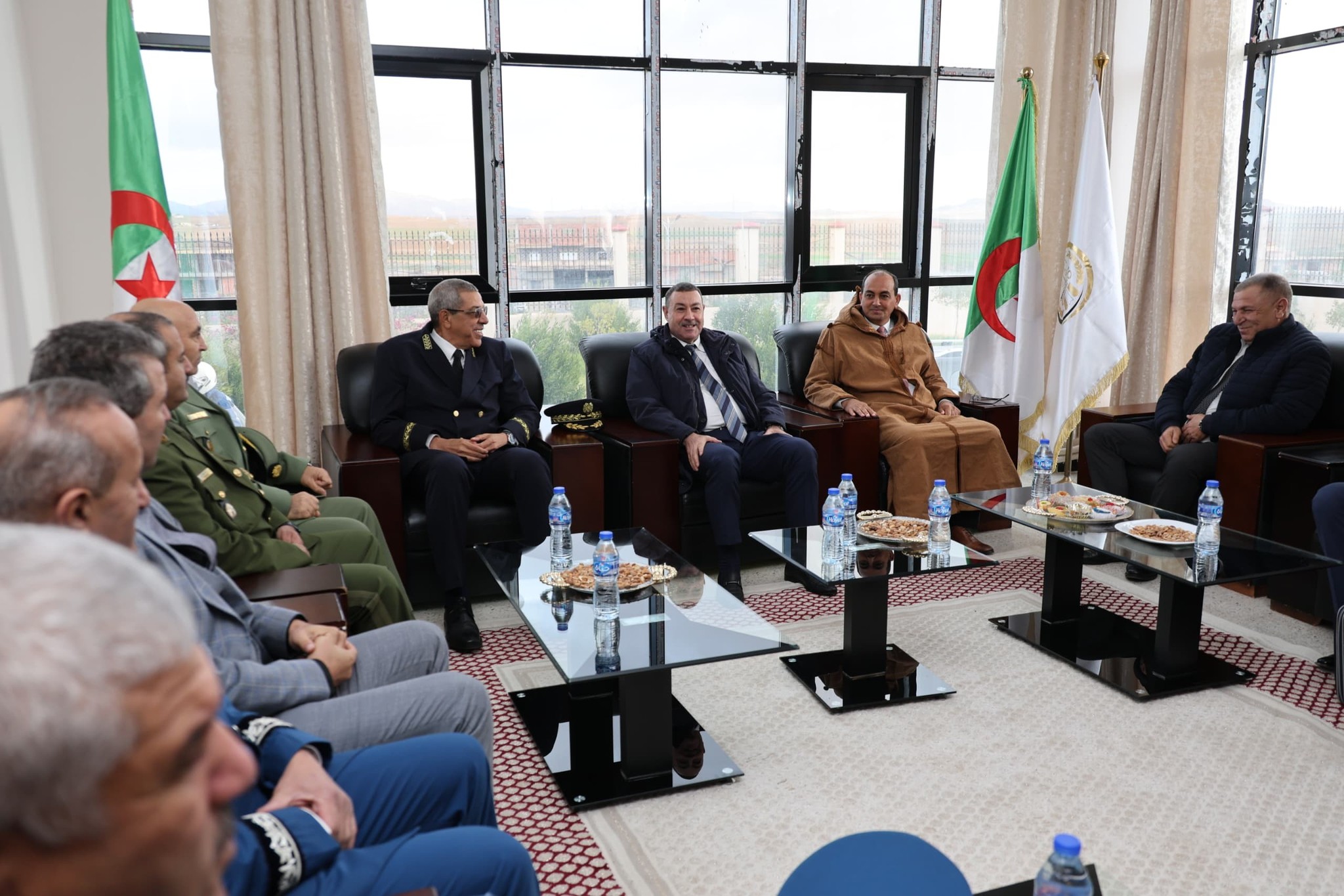 المسيلة/ مراسم استقبال السيد السعيد سعيود وزير الداخلية والجماعات المحلية والنقل وأعضاء الوفد المرافق له من طرف السيد نجم الدين طيار والي الولاية، بحضور السادة: رئيس المجلس الشعبي الولائي، الوالي المنتدب لبوسعادة، أعضاء اللجنة الولائية للأمن، أعضاء البرلمان بغرفتيه، المندوب المحلي لوسيط الجمهورية، الأمين العام للولاية، المفتش العام للولاية، رئيس دائرة سيدي عيسى، رئيس دائرة عين الحجل، مدراء الهيئة التنفيذية، رؤساء المجالس الشعبية لبلديات: سيدي عيسى، بوطي السايح، بني يلمان، عين الحجل، سيدي هجرس، مدير مدرسة تكوين المحامين، الأسر ة الثورية، أعضاء المجلس الشعبي الولائي، ممثلي الحركة الجمعوية والمجتمع المدني والأسرة الإعلامية.