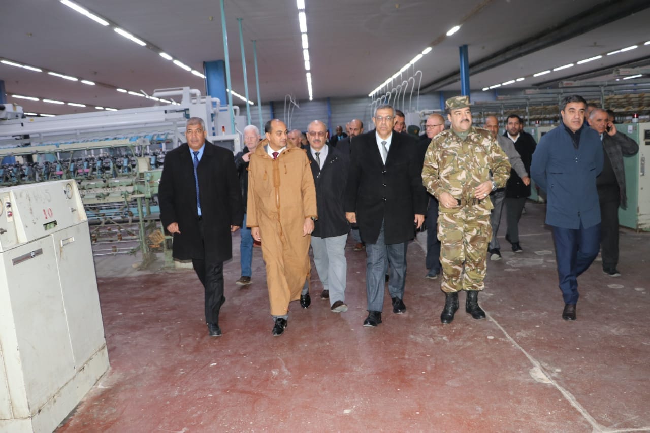 المحطة الأولى: زيارة المؤسسة الجزائرية للانسجة الصناعية والتقنية بالمنطقة الصناعية، والتي تتخصص في صناعة النسيج الصناعي للقطن، الغزل الصناعي للقطن، تكملة اعمال النسيج وانتاج الخيط والخيم والأغطية (Baches)