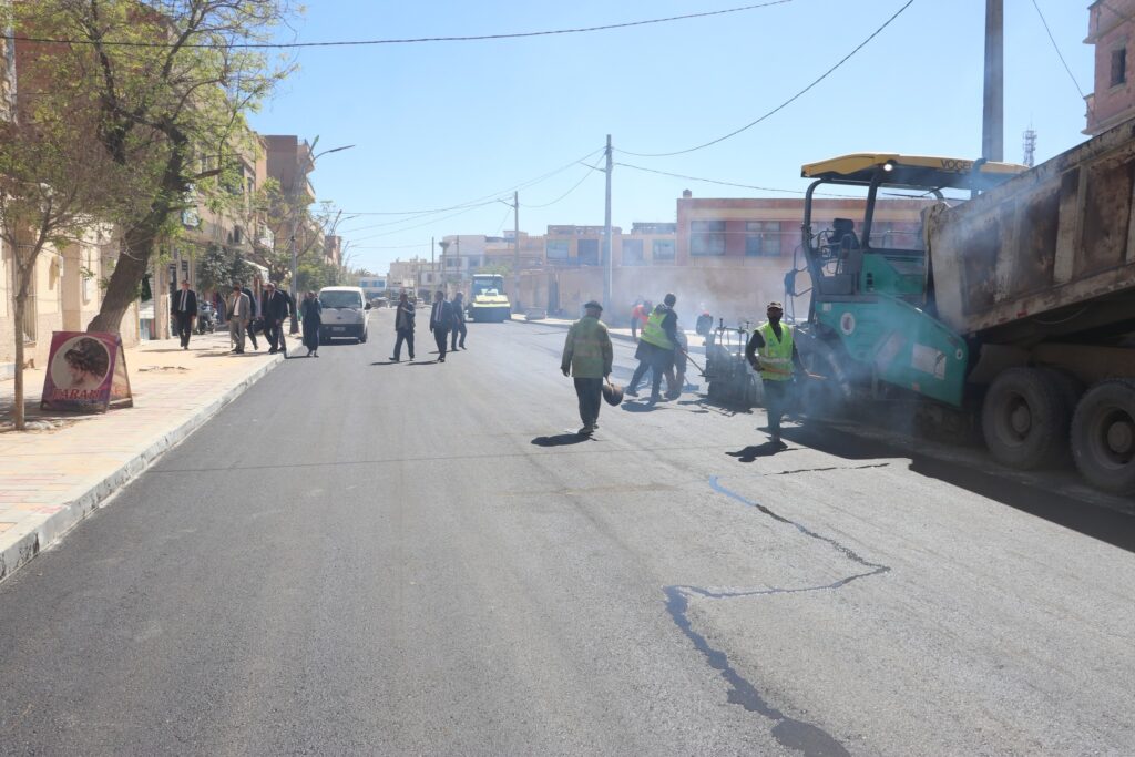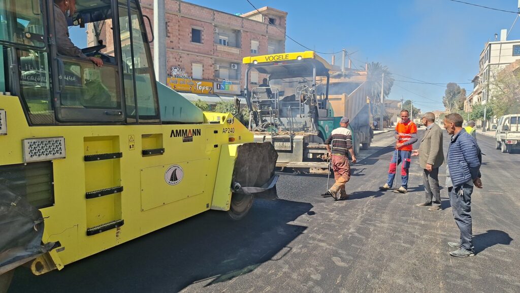 2. انطلاق اشغال تعبيد مقطع الطريق لمشروع إعادة تأهيل و تهيئة الطريق من مفترق الطرق نقطة البيع مطاحن الحضنة AGRODIV باتجاه مقر الأمن الحضري الأول على مسافة 700م.
