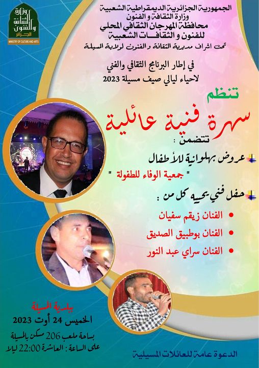 تنظم سهرة فنية عائلية ببلدية المسيلة يحييها كل من :