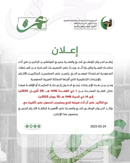 عمرة 1446هـ/ الديوان الوطني للحج والعمرة