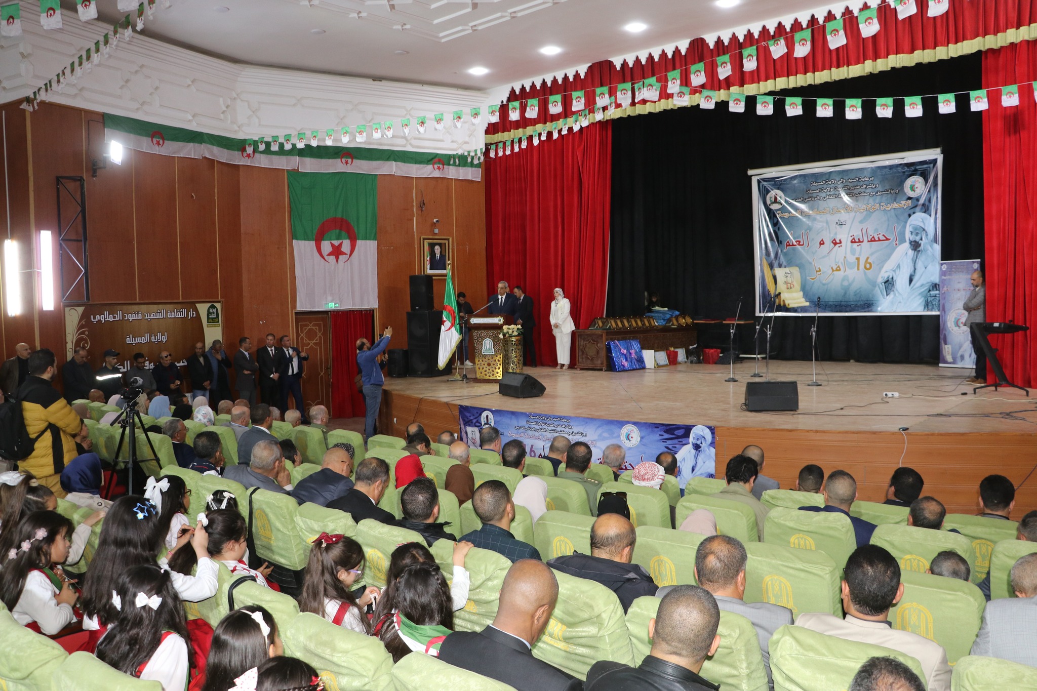المسيلة/ أشرف اليوم الأربعاء 16 أفريل 2025 السيد نجم الدين طيار والي الولاية، على افتتاح فعاليات إحياء يوم العلم الموافق لـ 16 أفريل من كل سنة، بدار الثقافة الشهيد قنفود الحملاوي بالمسيلة، بحضور كل من السادة: رئيس المجلس الشعبي الـولائي، أعضاء اللجنة الولائية للأمن، المندوب المحلي لوسيط الجمهورية، أعضاء المجلس الأعلى للشباب، ممثل المرصد الوطني للمجتمع المدني، مدير الجامعة، رئيس دائرة المسيلـة، رئيس المجلس الشعبي لبلدية المسيلة، مدير التربية، مدير الثقافة والفنون، مدير مدرسة أشبال الأمة الشهيد وعواع المدني، مدير دار الثقافة الشهيد قنفود الحملاوي، أعضاء أسرة التربية والتعليم، التلاميذ وعائلاتهم، والأسرة الإعلامية.