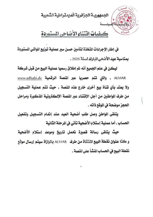 كيفيات اقتناء الأضاحي المستوردة