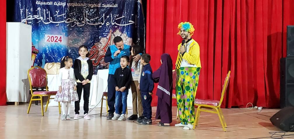 وزارة الثقافة والفنون، تحت اشراف مديرية الثقافة والفنون، دار الثقافة والفنون لولاية المسيلة، الأيام الربيعية لمسرح الطفل، عروض بهلوانية، تعاونية الشروق للعمل الثقافي لولاية المسيلة، اليوم 23 مارس 2024 على الساعة 10:00 صباحا، غدا لكم موعد مع جمعية الوفاء لترقية الطفولة لولاية المسيلة في نفس المكان والزمان.
