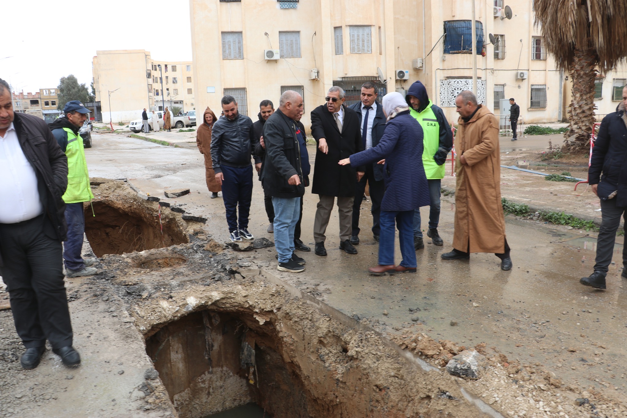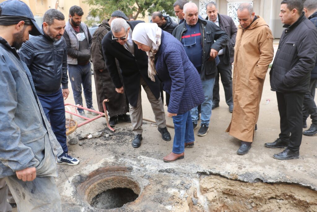 السيد والي الولاية أكد على ضرورة الإسراع في اتخاذ التدابير اللازمة لإعادة تأهيل شبكة الصرف الصحي عبر هذه الأحياء.
