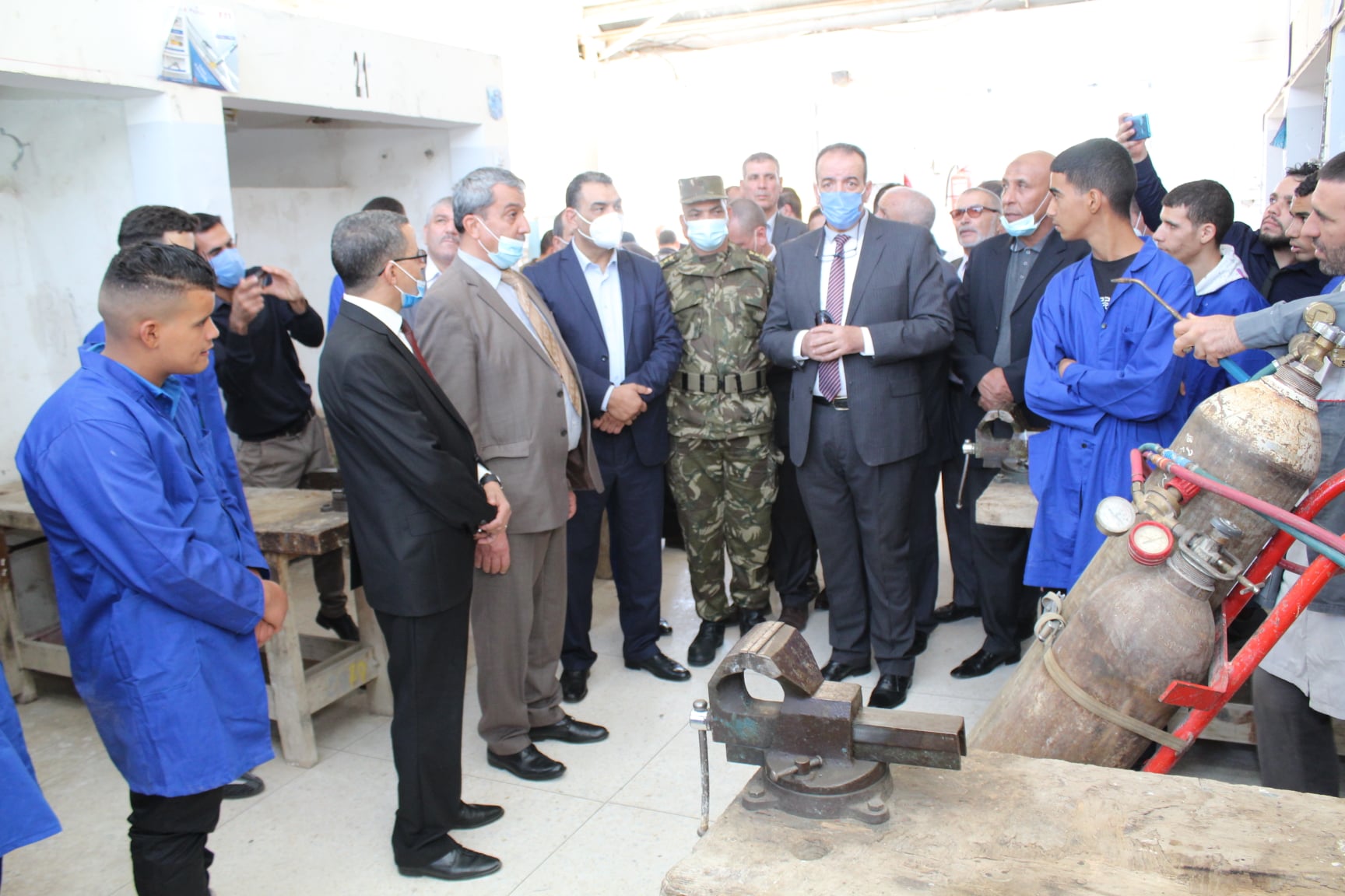 اشرف السيد الأمين العام للولاية رفقة السيد الأمين العام للولاية، السيد رئيس المجلس الشعبي الولائي، على إعطاء إشارة انطلاق افتتاح الدخول المهني دورة 2021, بحضور كل من السادة أعضاء البرلمان بغرفتيه، أعضاء اللجنة الولائية للامن، المندوب المحلي لوساطة الجمهورية، الأمين الولائي لمنظمة المجاهدين، وبحضور السيد مدير التكوين المهني والتمهين، السلطات المحلية للولاية، وبحضور الأسرة الإعلامية، بعد قراءة الكلمة الافتتاحية للسيد وزير التكوين المهني والتمهين من طرف السيد المدير الولائي للتكوين المهني والتمهين بالولاية والاستماع للنشيد الوطني، القى السيد الأمين العام للولاية كلمة بالمناسبة عبر من خلالها بسعادته بفرصة الالتقاء بأسرة التكوين المهني من اطارات واعوان ومتربصات ومتربصين، والتي أعطى من خلالها إشارة انطلاق الموسم، كما ذكر وأكد على المكانة المحورية للقطاع وأهمية ربطه بالسوق المحلية و الوطنية للشغل وتكييف الشعب التكوينية مع خصوصيات المنطقة، كما شكر اسرة التكوين المهني على مجهوداتهم وهبتهم التضامنية التي عرفتها الولاية بمناسبة جائحة كوفيد 19. كما أكد السيد الأمين العام للولاية على ضرورة التكفل بالمتربصين والمتربصات بعد تخرجهم، بعد ذلك استمع السادة الحضور لشرح حول المعهد والتخصصات الممكنة وكذا مختلف الاحصائيات المتعلقة بالقطاع، كما تم الاشارة لدور القطاع واهتمامه بمناطق النائية والبعيدة. ليتم تفقد مختلف مرافق المركز وتجاذب أطراف الحديث مع بناتنا وابنائنا المتربصات والمتربصين، وكذا الاستماع لمختلف الشروحات للمعرض المقام بالمناسبة من طرف المؤسسات والجمعيات شريكة القطاع.
