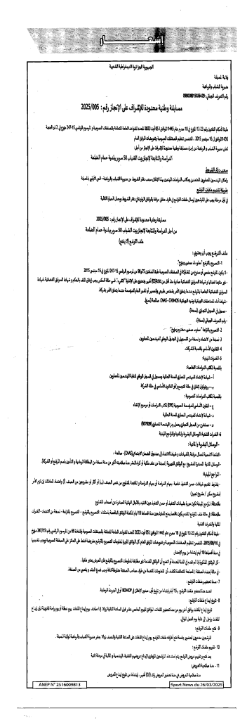 مسابقة وطنية محدودة للإشراف على الانجاز 2025/05 مديرية الشباب والرياضة لولاية المسيلة