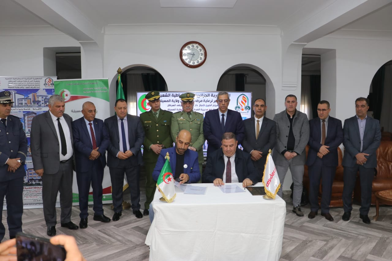 وكانت المناسبة للإشراف على إتفاقية تمويل بين شركة كوسيدار وجمعية البر لرعاية مرضى السرطان بالمسيلة، المتضمنة إعانة مالية تقدر بـ 200 مليون سنتيم.