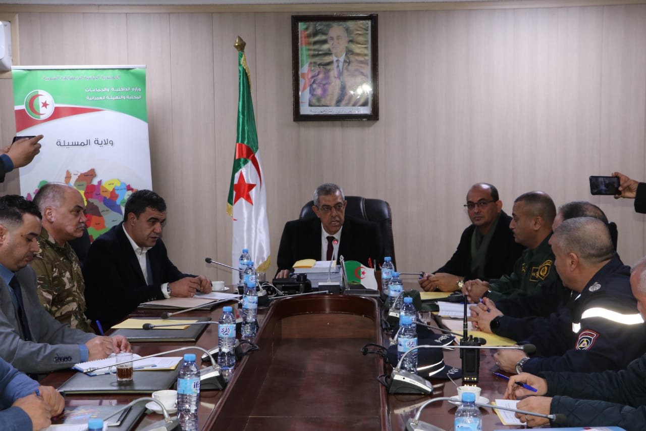 المسيلة/ مناورة محاكاة لتمرين افتراضي تجريبي لخطر الفيضانات بقرية الشتران بلدية خطوطي سد الجير دائرة الشلال، تلقى السيد نجم الدين طيار والي ولاية المسيلة، صبيحة يوم الأحد 15 ديسمبر 2024 إتصالا هاتفيا من السيد المدير الولائي الحماية المدنية، تعلمه بحدوث فياضانات بقرية الشتران بلدية خطوطي سد، وعلى إثر ذلك استدعى السيد والي الولاية رؤساء مقاييس مخطط النجدة الولائي بحضور السيد رئيس المجلس الشعبي الولائي، السادة أعضاء اللجنة الأمنية للولاية.