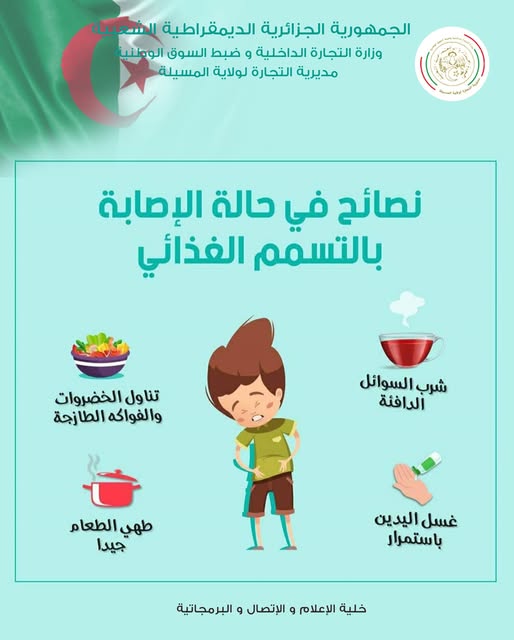 نصائح في حالة الإصابة بالتسمم الغذائي