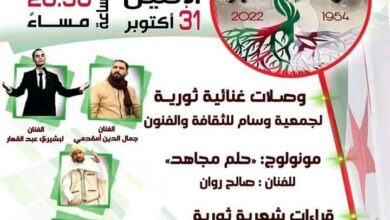 المسيلة/ البرنامج الولائي المسطر في إطار الإحتفالات المخلدة للذكرى 68 لاندلاع الثورة التحريرية للفاتح نوفمبر 1954-2022 🇩🇿 .. المعد من…