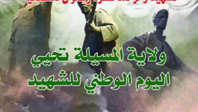 ولاية المسيلة تحيي اليوم الوطني للشهيد 18 فيفري المنظم تحت شعار “الشهيد رمز للذاكرة وعنوان للتضحية” حسب البرنامج التالي: