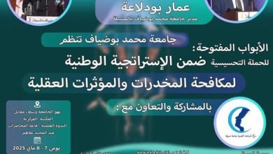 المسيلة/ أشرف اليوم الأربعاء 07 ماي 2025 السيد نجم الدين طيار والي الولاية على افتتاح فعاليات الأبواب المفتوحة للحملة التحسيسية…