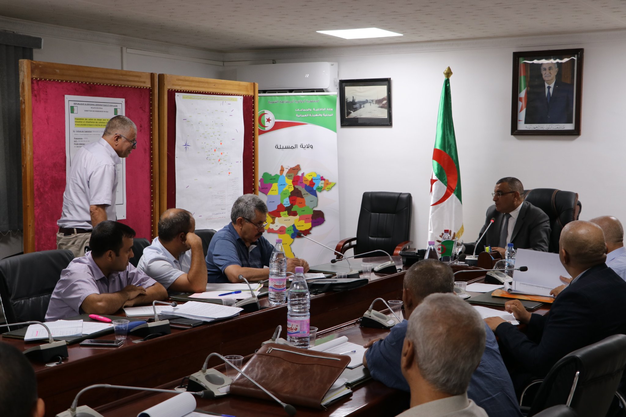 ترأس السيد عبـد القـادر جـلاوي والـي الولايـة اليوم الخميس 18-08-2022 اجتماعا تنسيقيا موسعا، وهذا بحضور السيد الأمين العام للولاية والسادة: مدير الإدارة المحلية، رئيس دائرة المسيلة، رئيس بلدية المسيلة، مدير البرمجة ومتابعة الميزانية، مدير التعمير والهندسة المعمارية والبناء، مدير الموارد المائية، مدير الطاقة، مدير الأشغال العمومية، مدير شركة توزيع الكهرباء والغاز بالمسيلة، مدير الديوان الوطني للتطهير بالمسيلة، إطارات ومهندسي البلدية، رؤساء الأقسام الفرعية لدائرة المسيلة (الأشغال العمومية، الموارد المائية)، رئيس مصلحة بمديرية التعمير والهندسة المعمارية والبناء، رئيس مصلحة بالأمانة العامة للولاية وملحق بالديوان، لدراسة: