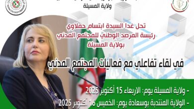 المسيلة/ في 25 أكتوبر 2025، تُطلق وزارة الفلاحة والتنمية الريفية بالشراكة مع المديرية العامة للغابات وبدعم من جمعية الجزائر الخضراء،…