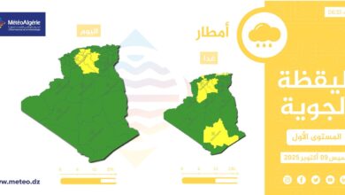 تنبيه من المستوى الأول باللون الأصفر، اليوم الخميس 33 أكتوبر 2025 1-أمطار: الولايات المعنية: المسيلة، المدية، عين الدفلى، الجلفة، تيسمسيلت،…